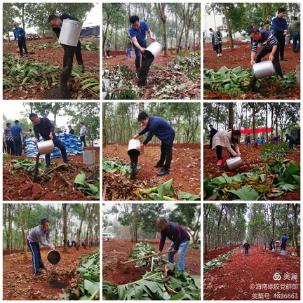 為將結(jié)對共建落到實處,第一黨支部結(jié)合當(dāng)前基地分公司正在開展膠園冬春管理工作的實際,與豐收隊黨支部共同商定開展“結(jié)對共建同進步 義務(wù)獻肥促冬管”主題黨日活動。在海墾集團黨委委員、副總經(jīng)理,海南橡膠黨委書記、董事長艾軼倫等黨員帶領(lǐng)下,支部黨員積極響應(yīng)號召,自發(fā)捐款3400元購買羊糞生物有機肥,并施放到豐收隊的橡膠林段,為明年橡膠增產(chǎn)增收貢獻綿薄之力。